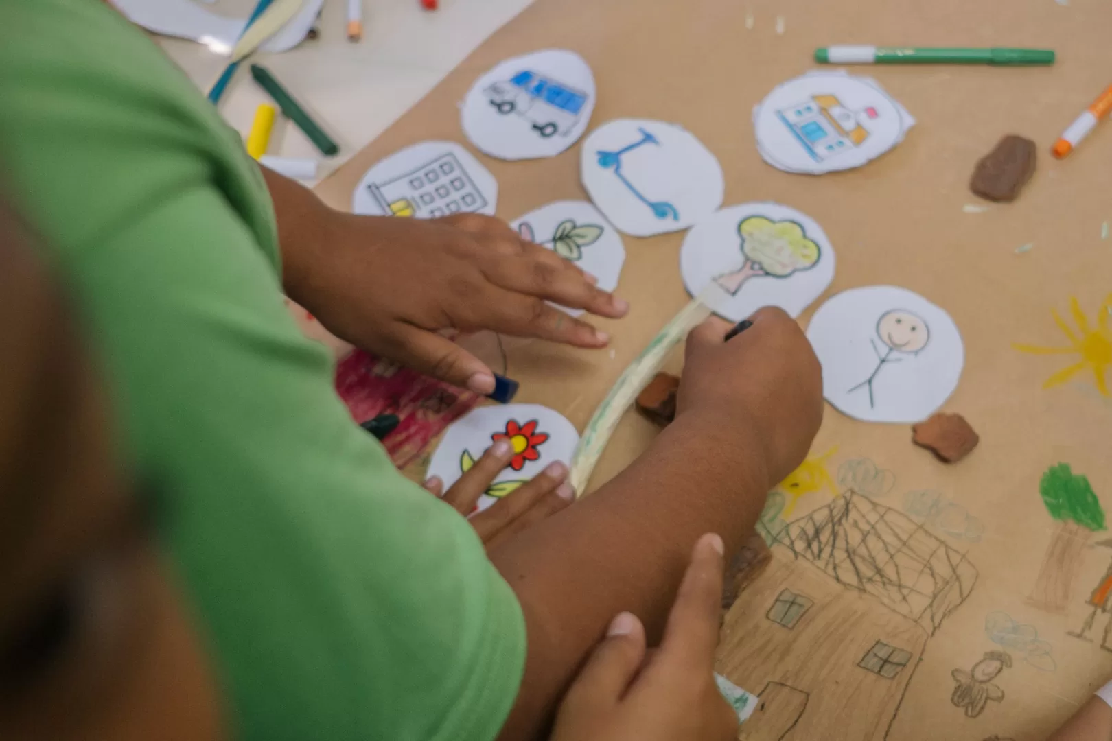 A partir da estratégia “Pequenos Urbanistas da Centralidade”, foi possível acessar leituras do espaço produzidas pelas crianças que ampliam, qualificam e tensionam o olhar técnico. Ao construírem a “Cidade dos Sonhos” por meio de colagens com elementos naturais, como folhas e sementes, e materiais expressivos como lápis de cor, giz de cera e massinha de modelar, em um ambiente de livre criação, as crianças elaboram representações densas sobre o microterritório em que vivem.